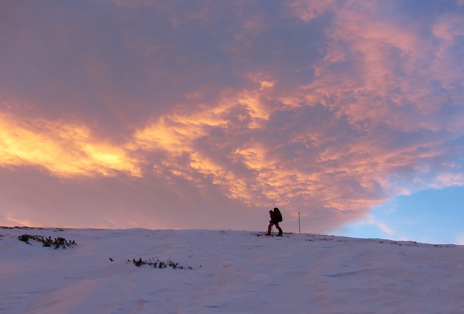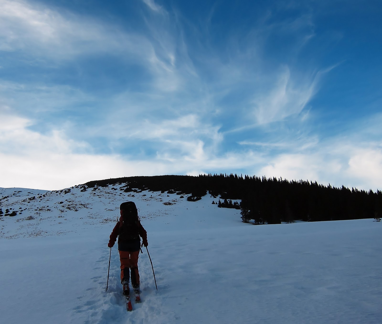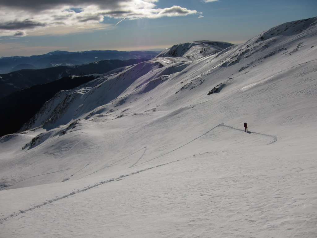 Pe sus tristete mare cu zapada, avem mai mult spor sa tropaim in clapari si cu schiurile pe rucsac.