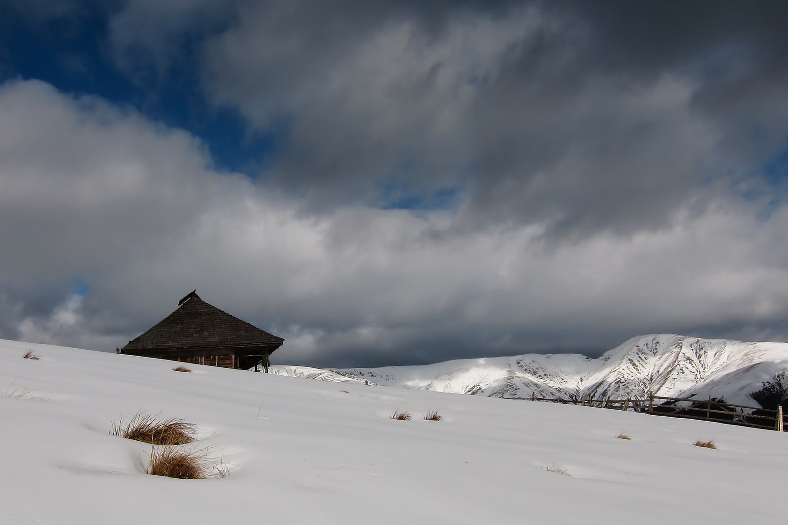 O alta dilema era sa gasim un loc in care sa fie ceva zapada. Adica se existe o baza pentru cateva viraje si sa nu rascaim iarba cu cozile schiurilor. Am fixat ca destinatie Iezer. Amatori s-au gasit dar au si disparut rand pe rand, asa ca vineri seara din 4 evanghelisti (erau mai multi interesati de fapt), am ramas 3, adica noi doi. Cum nu aveam ora de intalnire cu nimeni a rezultat o plecare intarziata si un mic-dejun luat in premiera sambata inainte de a pleca la munte, dupa ani de zile. Am plecat cu toate cumparaturile pe la 10 asa ca nu se poate spune ca am fost nici matinali, nici vrednici. La Voina parcam dupa ora 13.00. Nici nu stiu la cat exact…nu prea ne interesa sincer. Stiam ca daca ne grabim ajungem pe lumina. Daca nu ne grabim ne prinde noaptea…Nu aveam nici plan…decat sa ajungem la refugiu unde ne imaginam ca o sa gasim pustiu.